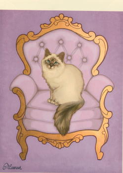 Avec son enveloppe -Sacré de birmanie sur un fauteuil, illustré par Maryline Cazenave, edition Phenicia, dim 13 x 17 cm,Réf A008