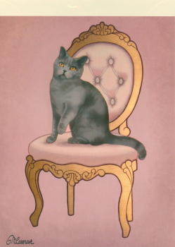 Avec son enveloppe -British longhair sur un fauteuil, illustré par Maryline Cazenave, edition Phenicia, dim 13 x 17 cm,Réf A001