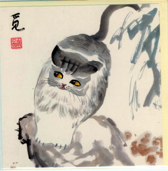 Avec son enveloppe -Chat chinois dans son panier,Edition Catch, Réf NC 4980, dim 12 x 12