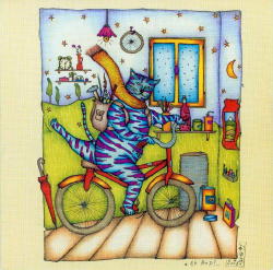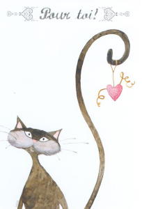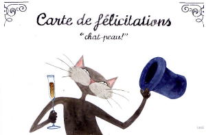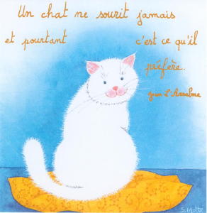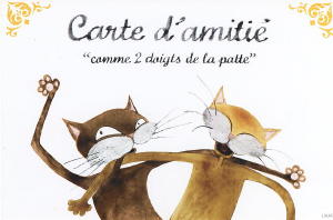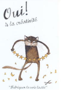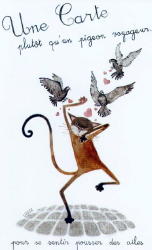 Carte postale carrée -A fréquenter le chat on ne peut que s'enrichir. Colette Edition ` voyages` Réf : AC09 , dim 13,5 x13,5 cm