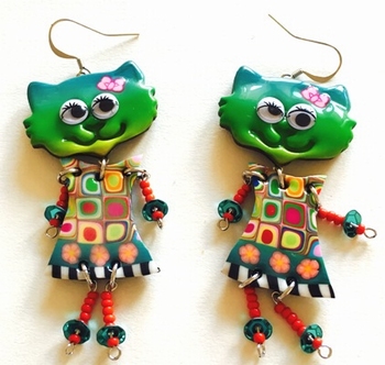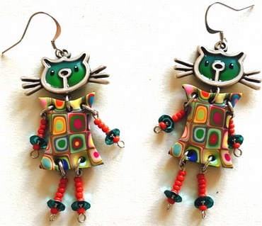 Boucle d'oreilles chat articulé -6 cm x 3 cm Chat articulé , en polymère. Les motifs colorés font partie du modèle (ils ne sont pas peints). Fabrication artisanal en france