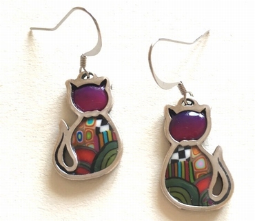 Boucle d'oreilles chats mini -Contour argenté, 2,5 cm x 1,5 cm Métal et polymère. Les motifs colorés font partie du modèle (ils ne sont pas peints). Fabrication artisanal en france