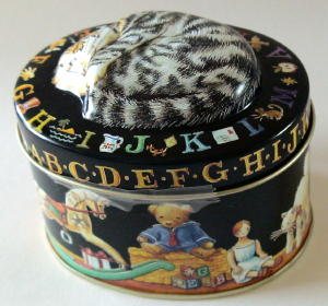 Motif Lesley Ivory -Petite boite ovale en métal de 8x 6 cm , avec un puzzle de 100 pièces 19 cm x 19 cm