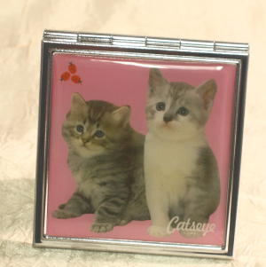 photos de chat en noir et blanc -En forme de coeur, recouvert de tissu microfibre et 2 mirroirs ? l'intérieur, matière microfibre,dimensions 7 x 7 cm