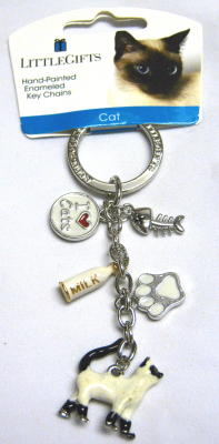 Siamois debout -4 breloques et un chat en métal emaillé, Longueur 8 cm