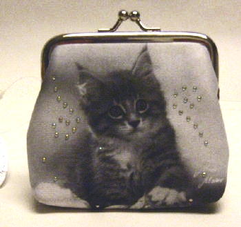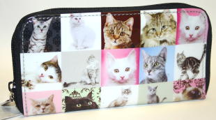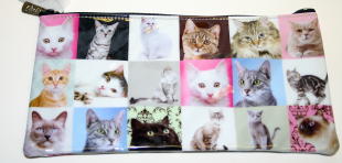 Les chatons dans la laine -Pochette fermée par une fermeture avec une dragonne, doublée avec poches, Dim 14 cm x 8 cm