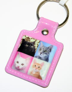 La galerie de chats -En vinyl rose rigide, 4 petites photos de chats, dim 4,5 cm x 4,5 cm
