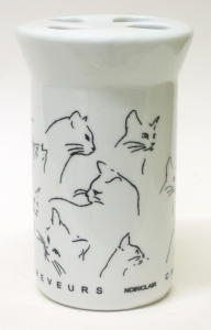Chats rêveurs -En faience blanche motif chats noirs, hauteur 12 cm