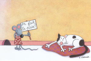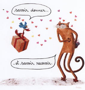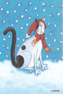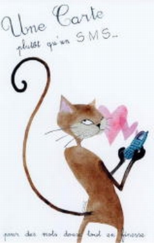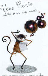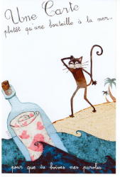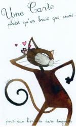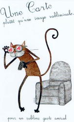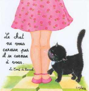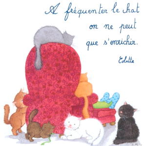 Carte postale carrée -A fréquenter le chat on ne peut que s'enrichir. Colette Edition ` voyages` Réf : AC09 , dim 13,5 x13,5 cm