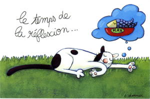 Carte postale carrée -Un chat ne sourit jamais et pourtant c'est ce qu'il préfère . Jean L'Anselme Edition ` voyages` Réf : AC09 , dim 13,5 x13,5 cm