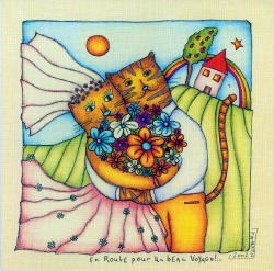 Carte postale carrée -En route pour un beau voyage!...Edition ` voyages` Réf : AMF11 , dim 13,5 x13,5 cm