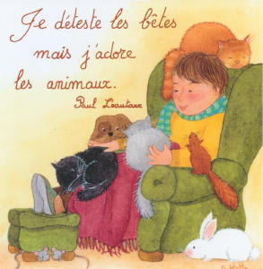 Carte postale carrée -Je déteste les bêtes mais j adore les animaux Edition ` voyages` Réf : Acc 10 , dim 13,5 x13,5 cm